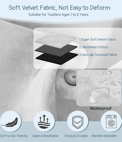 • Soft & Waterproof Toddler Travel Bed: This portable toddler plane bed cot is made from high quality goose down to provide cloud-like softness and comfort for your child on long journeys, helping your child to sleep soundly. The waterproof material ensures easy cleanup, so you don't have to worry about spills and accidents. The non-slip granules designed on the bottom prevent any unwanted sliding, and the side storage pockets allow for better storage of your child's toys and snacks