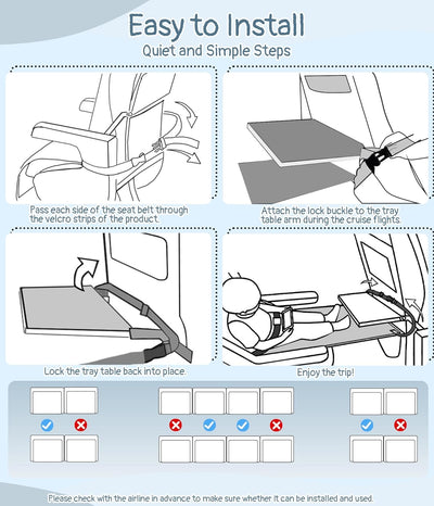 • Easy to Set Up: The airplane toddler travel cot is quick and easy to set up, no special tools are required, simply fix one side to the seat and hang the other on the armrests of the tray table, then ensure maximum comfort with the adjustable carabiners and velcro to ensure a safe and comfortable resting position for your child. The infant airplane bed comes with adjustable length snaps to fit most seats