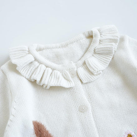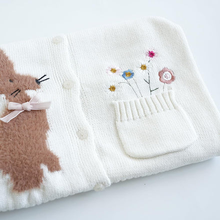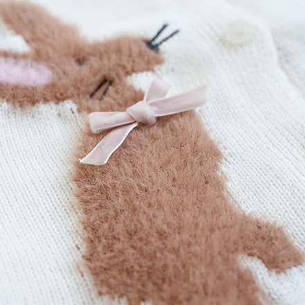 • Cute rabbit pattern embroidered cardigan sweater, crew neck outwear, long sleeves, button down design can easy to wear, ribbed trim at hem and cuffs.