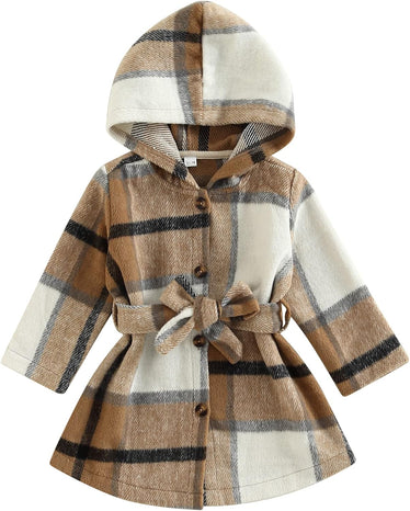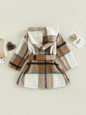 Toddler Baby Girl Dress Coat Long Sleeve Plaid Baby Girl Fleece Jacket Fall Winter Outerwear Outfit