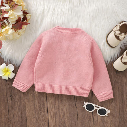 Toddler Baby Girl Sweater Floral Cardigan Knit Long Sleeve Coat Cute Fall Winter Outfits Clothes Infant Newborn (Pink, 6-9 Months)
