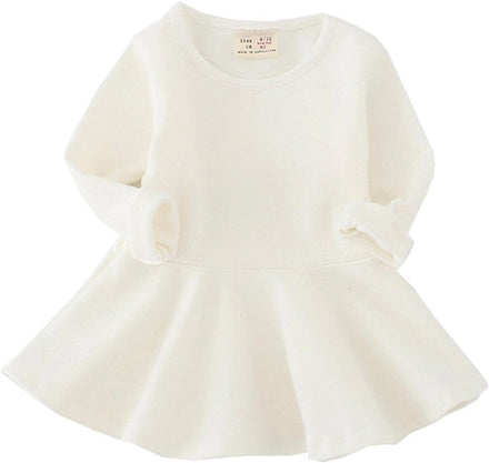 - Cute baby girls round neck solid pleated dress peplum tops , casual ,simple but classic . It can be wear in spring,fall and winter.