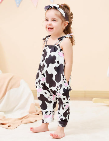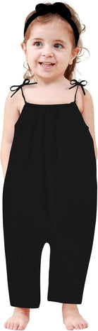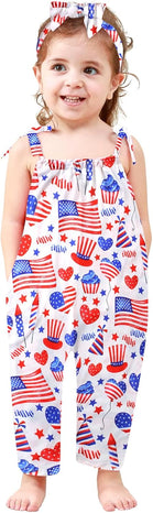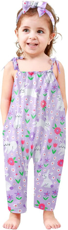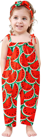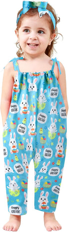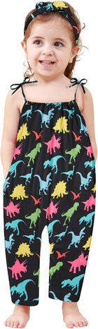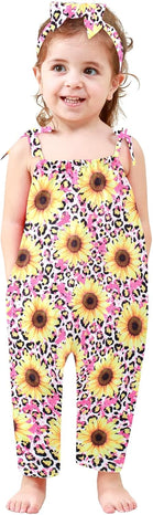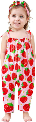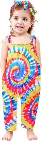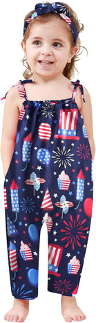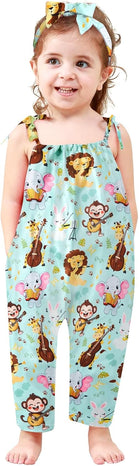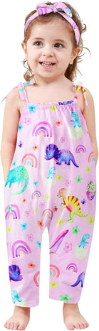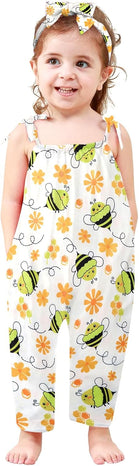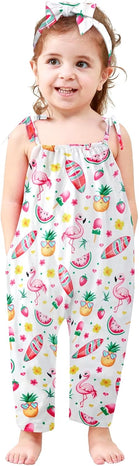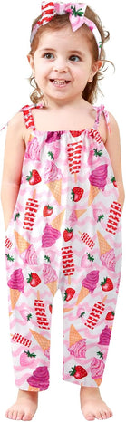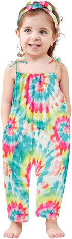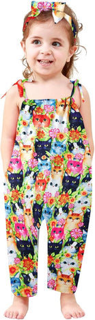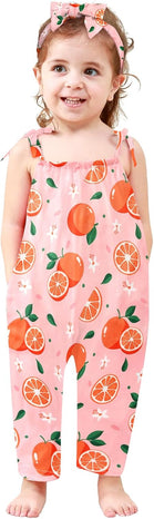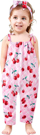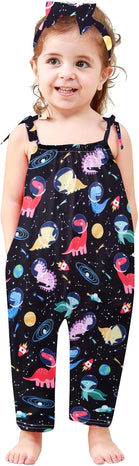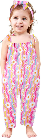 Toddler Baby Girls Romper Sleeveless Jumpsuit Summer Clothes Adjustable Tie-Up Strap with Pocket Headband 1-5T