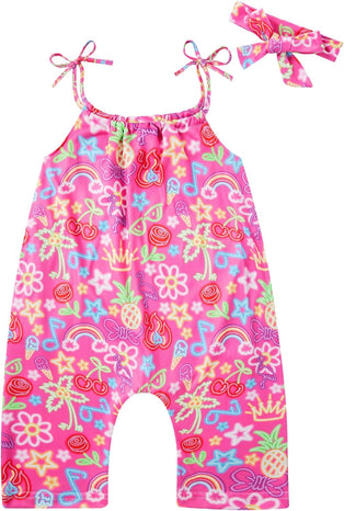• Design: The innovative romper has an adjustable tie-up strap and matching headband design, letting your baby look cute and stylish and feel cool in summer, kids can run around the yard or parks freely, and play happily