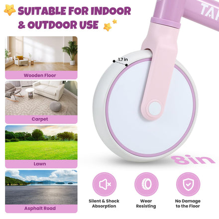 • 【Easy to Assemble & Carry】Encouraging outdoor activities is crucial for both the physical and mental health of children. The lightweight balance bike is easy to carry or transport, whether you're heading to the park or on a family vacation. Non-slip wheels ensure stability on various surfaces, from carpet to lawn, adapting effortlessly to multiple scenarios. The ease of installation means you can set up the bike for toddler in minutes, ready for spontaneous outings whenever the mood strikes.