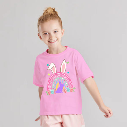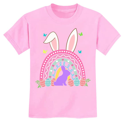 Toddler Boys Girls Easter Shirt Rainbow Bunny T-Shirts Kids Short Sleeve Rabbit Graphic Tees Girls Tops 5T
