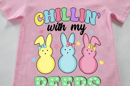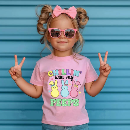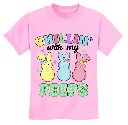 Toddler Girls Easters T-Shirt Chillin with My Peeps Bunny Shirts Short Sleeve Tee for Baby Girls Kids Cotton Tops 7 Years