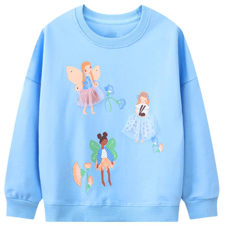Toddler Girls Sweatshirt Long Sleeve Shirt Spring Fall Winter Clothes Cotton Cute Crewneck Pullover Sweater Top Outfits Clothing Blue Fairy 3t