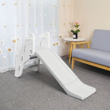 SIMPLICITY: color combination of gray and white is simple and elegant. It can be perfectly adapted to the decoration of the living room and bedroom; without worrying that it will be awkward when placed at home.FOLDING: slide is designed to be folded up and stored when not in use; reducing floor space. It’s compact in structure and it’s lightweight and portable. You can easily fold it up and move it either indoor or outdoor.SAFEYT: This folding slide features easy to climb steps and a smooth and wide slide; allowing kids to enjoy the fun of climb and slide. The step slopes are gentle enough for the kids to climb by themselves and the combination of climb and slide contributes to promote fitness; balance and coordinationGAMING: There is no need for doubt that it’s heavy duty with a strong bearing capacity of 110 LBS. It’s dependable; durable and suitable for kids aged 3-4.MATERIAL: Each individual assembly part is integral; smooth without sharp edges.