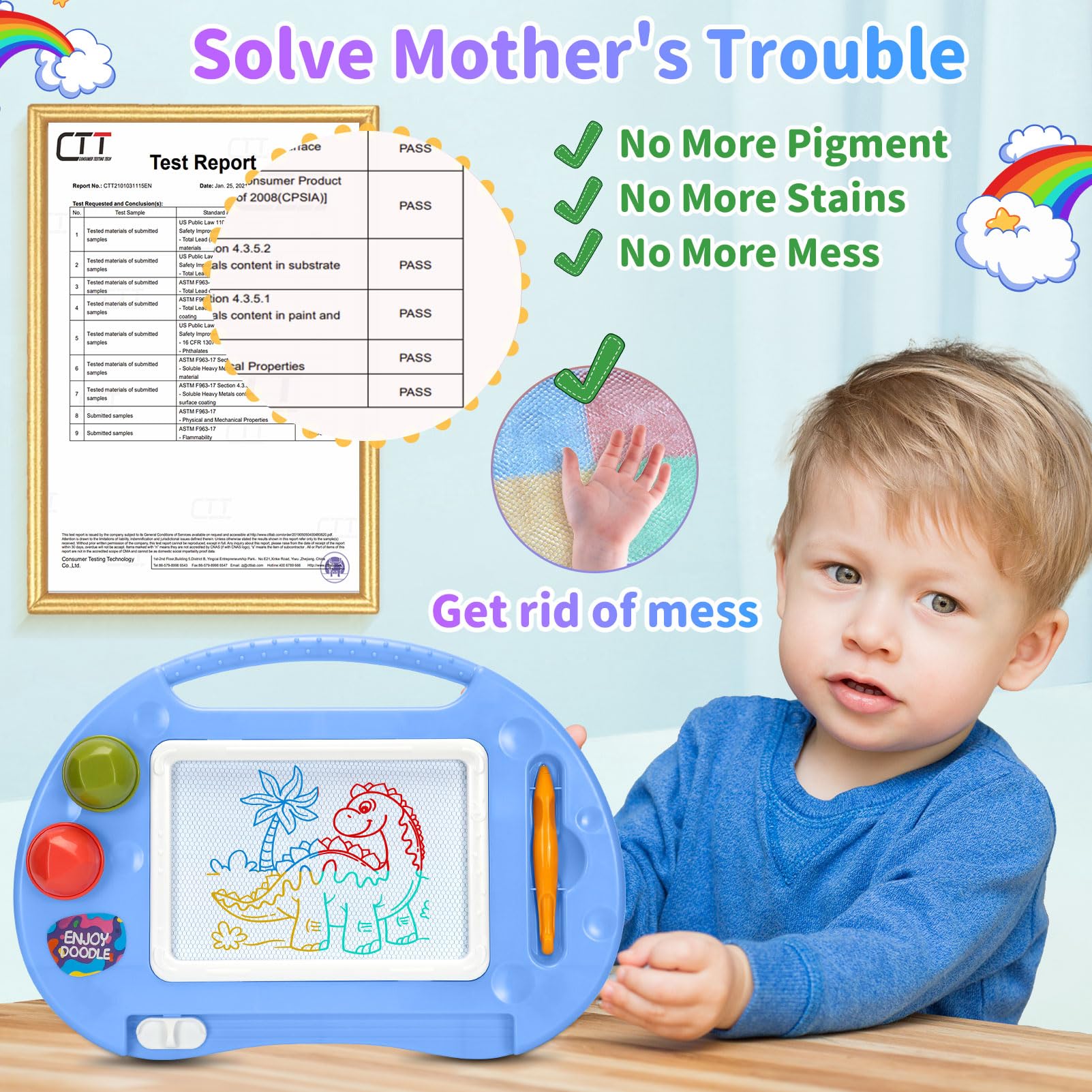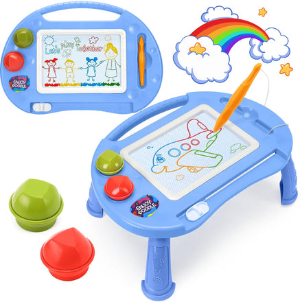 • Adorable Magnetic Doodle Board: Toodler toys for girls boys magnetic doodle board table with high-quality ABS material. Classroom essentials drawing board with 2 stamps features round edges and soft curves to eliminate potential injuries. The design of the handle is convenient for children to carry, and the four legs of the doodle board table are solid enough to support the toddler drawing board. Toddler toys age 2-4 magic writing pen with strong string for kids age 2-4, easter gifts for girls