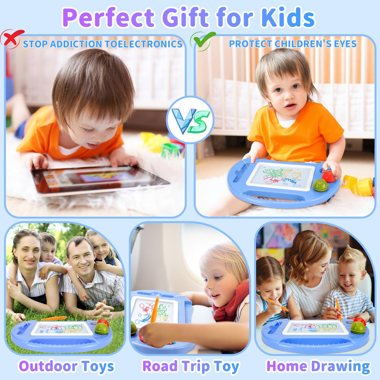 • Toddler Toys for Boys Girls Age 2 3 4 5: One year old boy gifts magnetic drawing board is great toys for girls age 1 2 3. 18 months boy gifts little kids should use under adult’s supervision. A playing toy for your kids, enjoy endless fun for indoor and outdoor travel. Festivals gifts, valentines gifts for kids,birthday gifts or Easter gifts for kids and suit for toddlers. Funny toys for children, kids love it