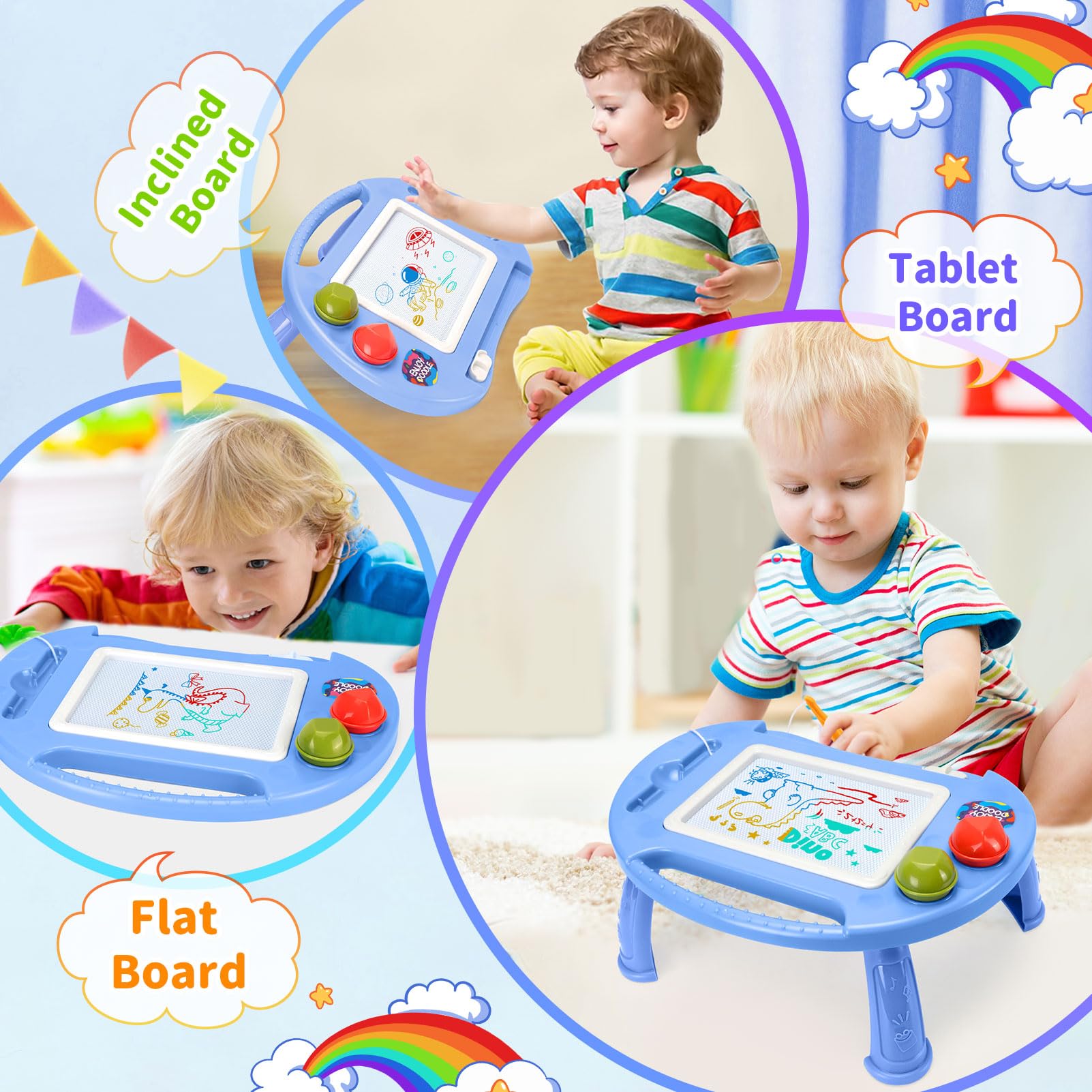 • Magnetic Doodle for Toddlers: The four legs of baby toys drawing table are very convenient for installation and disassembly,toys for boys change the form of the magnetic writing board: upright, oblique and flat. Children can choose the most suitable form for their own drawing according to their own needs, perfect easter gifts for toddlers. Two year old girl gifts helps to develop the correct sitting posture of children
