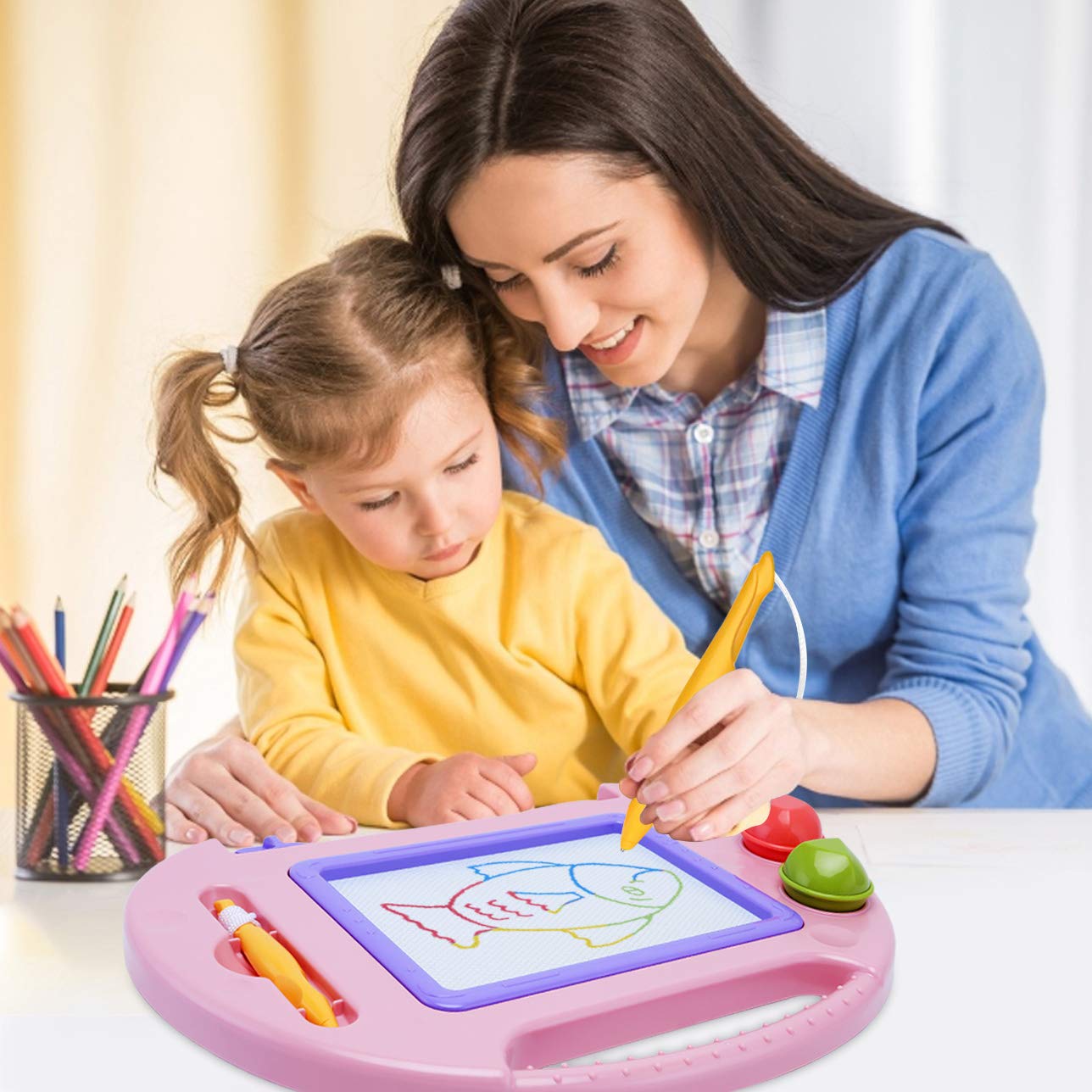 • Colorful Magnetic Drawing Board: This toddler toys has 4 color areas: red, blue, green and yellow. Toddler toys 2-3 colorful magnetic erasable doodle board toys for girls is helpful to educate children to learn color, and cultivate their ability of writing and painting. Develop children's creative imagination. Besides painting kids toys age 2,toys for toddlers 1-3 can exercise arithmetic and writing on the drawing board. Good kids easter gifts for toddler toys age 1-2