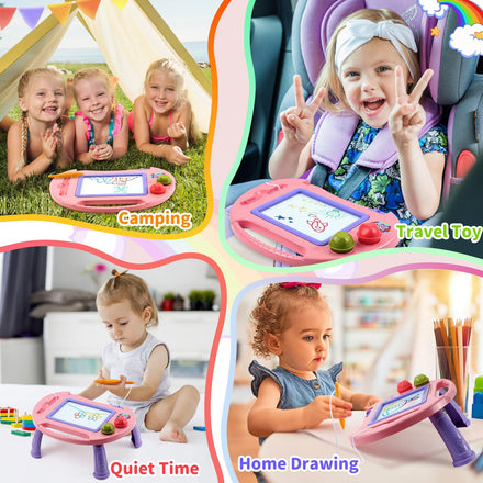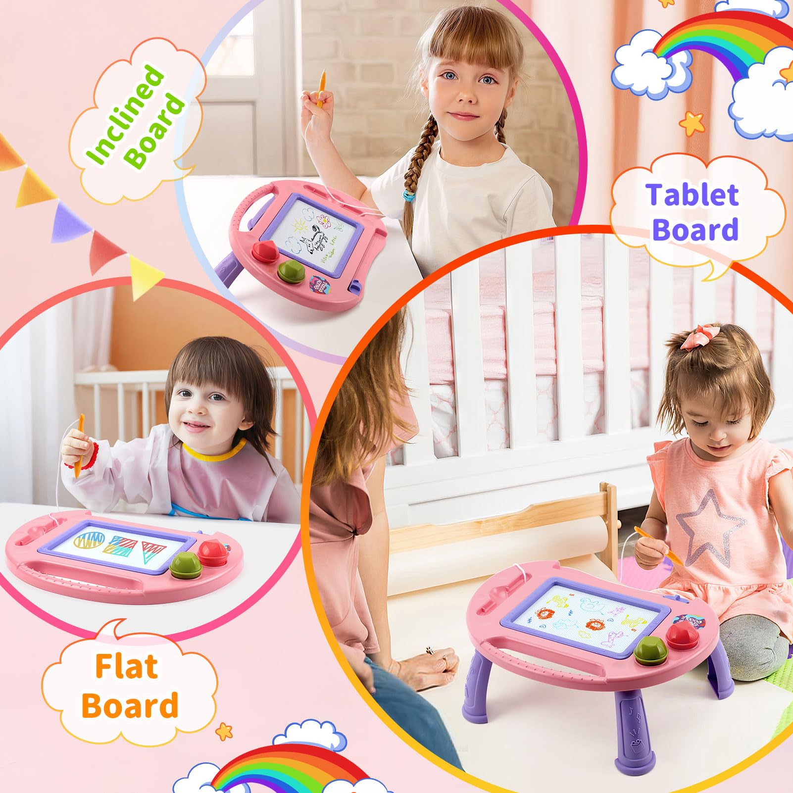• Magnetic Doodle for Toddler Girl Boy Toys: 1 2 3 year old girl toys with four legs of the drawing table are very convenient for installation and disassembly, and change the form of the magnetic writing board: upright, oblique, and flat. Educational toys for toddlers 1-3, children can choose the most suitable form for their drawing according to their own needs. Baby girl toys for 1 + year old and easter gifts for toddler toys 3-4 which help to develop the correct sitting posture of children