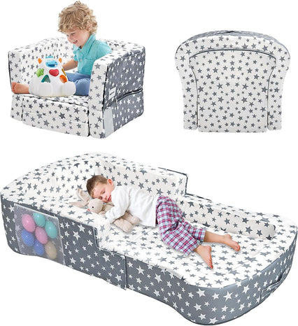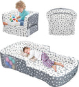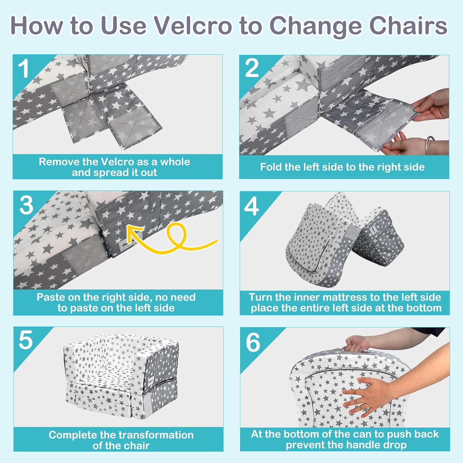 - Two-in-one Multi-functional Design:Toddler bed can be quickly switched between a crib and a chair to meet the needs of napping, foldable playing or going out.The side design can prevent children from rolling off the bed.Strengthening the Velcro fixation ensures structural stability and safer use.