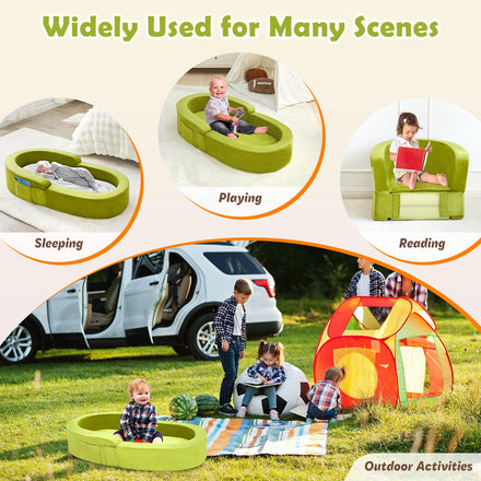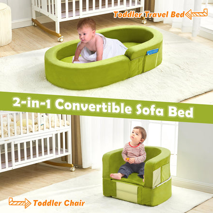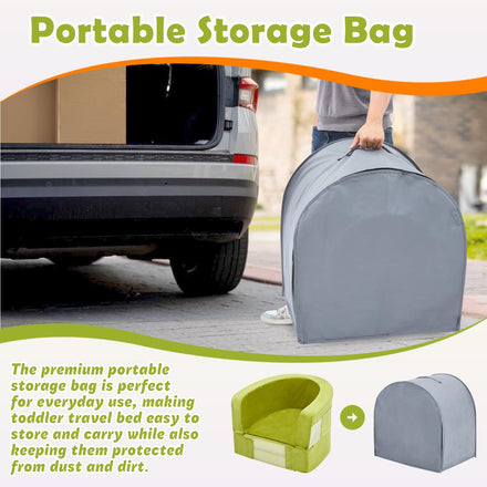 • Widely Used: the 2-in-1 toddler travel bed is perfect for both indoor and outdoor occasions. At home, your toddlers can use the toddler bed to sleep and play, or your kids also can use this kid sofa to read and relax. Also the toddler bed is a good kit for outdoor activities, such as Picnics, outdoor trips, camping, the toddler bed can make your toddler sleep well even in outdoors
