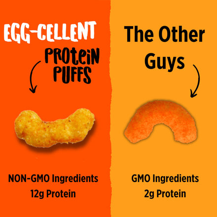 • A Better Snack: Made with easily digestible, high quality protein, our puffs are naturally low carb, paleo friendly, gluten free, peanut free, and non-gmo. That's a lot to get egg-cited about!