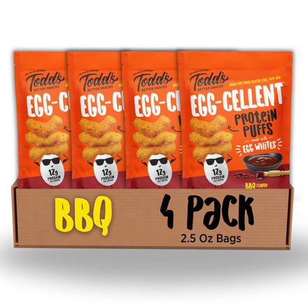Todd's Better Snacks Egg-Cellent Protein Puffs, Sweet & Smoky BBQ, 2.5 Oz (Pack of 4), Made with Egg Whites, 12g Protein, Gluten Free Healthy Snack