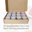 • SET OF 12 : each set includes 12 baby food containers with translucent lids, making it convenient to store various baby food separately, like yogurt,purees,cereal,breast milk,snacks,soup, veggies, cut fruits,meat, herbs, juices, etc.