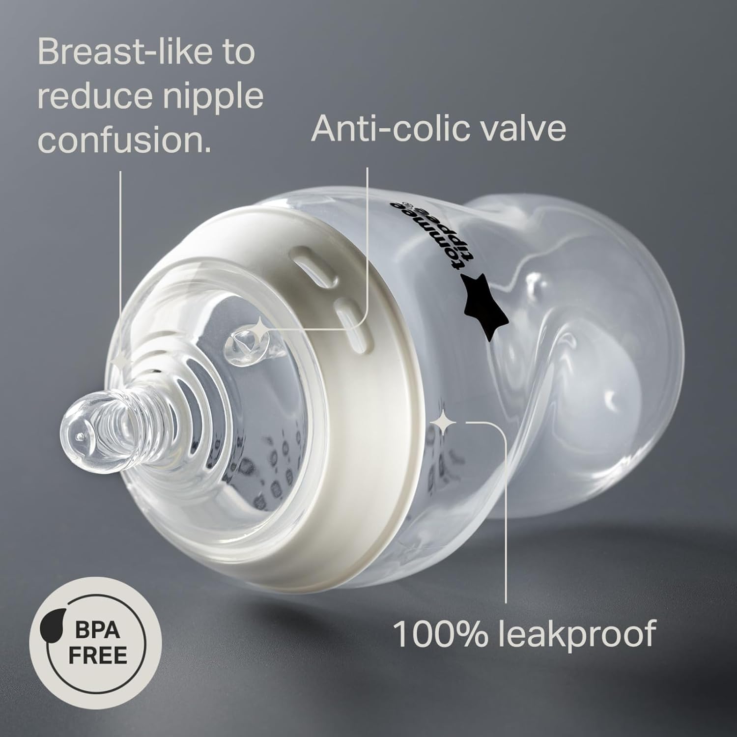 Tommee Tippee Natural Start Anti-Colic 9 oz BPA Free Baby Bottles, 0+ Months, Slow Flow Breast-Like Nipple, Self Sterilizing, Designed for Seamless Transition Between Bottle & Breast, Fiesta,Pack of 6