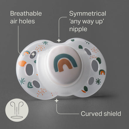 Details: Tommee Tippee - caring for parents since ‘65. Trusted by three generations of parents and caregivers, we have 60 years of expertise behind us. We know what works, what doesn’t, and what you (and your baby) really need. Our purpose? To liberate and amplify the intuition of newborn parents with empathetic design. Part of becoming a parent is realizing that often, things don't quite go to plan. That’s why we anticipate problems before they’ve even happened, and design smart solutions to help. Tommee Tippee baby pacifiers are designed in a range of different shapes, colors, and styles to suit your baby (and you). They're gentle on delicate skin, and expertly engineered to comfort babies, turning cries into smiles. From breast-like to ultra-light silicone and everyday, our paci collection is made to soothe babies from birth and beyond.
