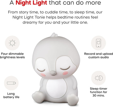 Tonies Night Light - Sleepy Penguin Audio Play Character from Sleepy Friends | Warm Glow | 140 Minutes of Beautifully Composed Melodies | Record Your Own Bedtime Stories