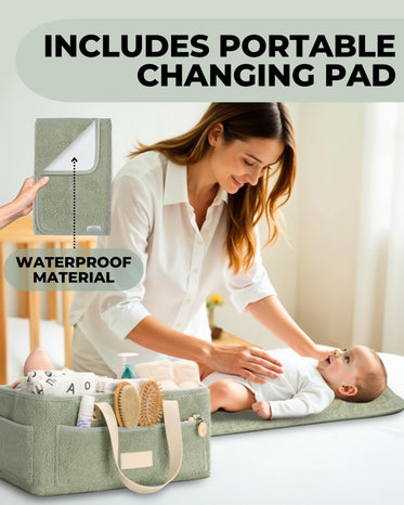 Color: 1/ Green Diaper Caddy with Changing Pad