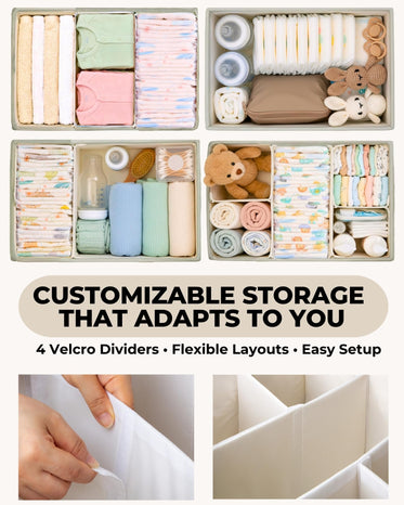 - Keep Essentials Neatly Organized: Our spacious large diaper storage organizer provides flexible storage for diapers, wipes, bottles, and toys.
