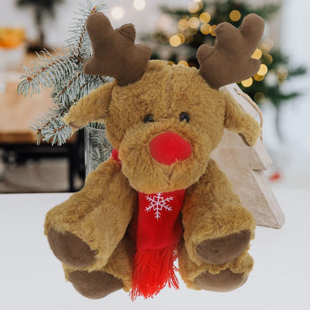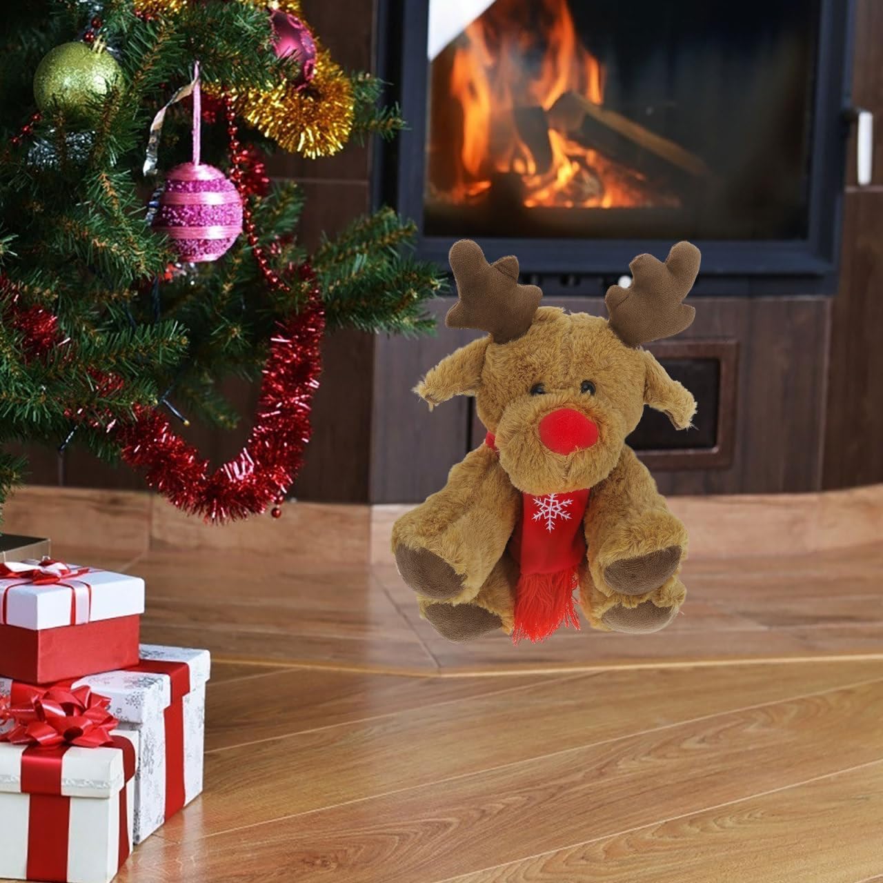• Cute Design: This reindeer stuffed animal features an adorable Rudolph the graphic, cute eyes, and a scarf embellished with snowflakes. It sits comfortably and easily rests on any smooth surface, creating a unique and sophisticated design. The light brown color creates a rich Christmas atmosphere that will delight both adults and children, making it an ideal addition to your Christmas decorations