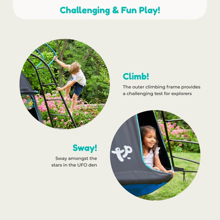 • ENDLESS PLAY: Children will enjoy endless fun and active playtime with the UFO climbing tower! Ideal for climbing and equipped with a cool hideout, this will quickly become a favorite backyard activity for boys or girls ages 3 - 8 years old.