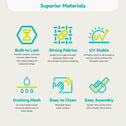 • SPECIFICS: Made of durable high-quality plastic enhanced with UV protection. Easy to assemble with positive-engagement interlocking post and joints. Assembled dimensions: 49˝ L x 85.5˝ W x 79˝ H. Max combined load 220 lbs.
