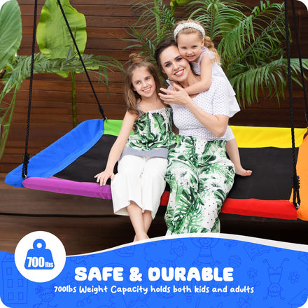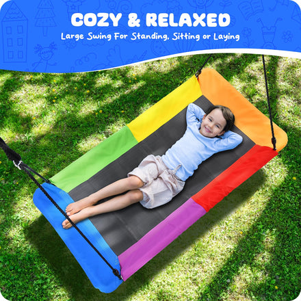 Trekassy 700lb Rectangle 60" Platform Tree Swing for Kids and Adults Waterproof 2 Hanging Straps (Rainbow)