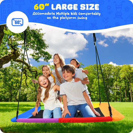 • Sturdy large plaform swing: 60" x 32" steel frame with tight weave fabric seat fits 5 kids or two adults. Weight rated to 700 pound as a great platform swing. Safer for child to swing for a long time