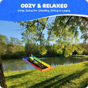 • Big Rectangle swing: Sit, lie, stand or surf on this big swing and enjoy the swing fun anywhere you want. You can install our swing almost anywhere indoor, outdoor or in a playground, backyard, park, or hang it on a swing set, tree, playset