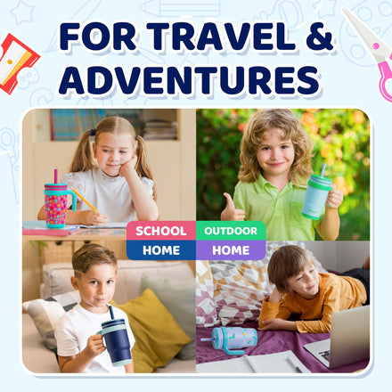 • 2. Splash-Proof and Leak-Resistant:The Children tumbler comes with a removable straw and silicone nozzle, both designed with a splash-proof feature to minimize spills, even if the cup is knocked over. The straw lid allows your little one to enjoy drinks like juice, milk, or milkshakes without worrying about messy accidents. A silicone ring around the lid adds extra security, providing a non-slip design to keep everything in place.