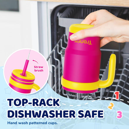 • 4. Removable, Easy-to-Clean Components:Both the removable straw and silicone nozzle are dishwasher safe, making cleanup a breeze. The silicone grip at the bottom is also removable, ensuring that every part of the Children tumbler can be thoroughly cleaned. The detachable components make this toddler cup easy to maintain and hygienic.
