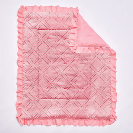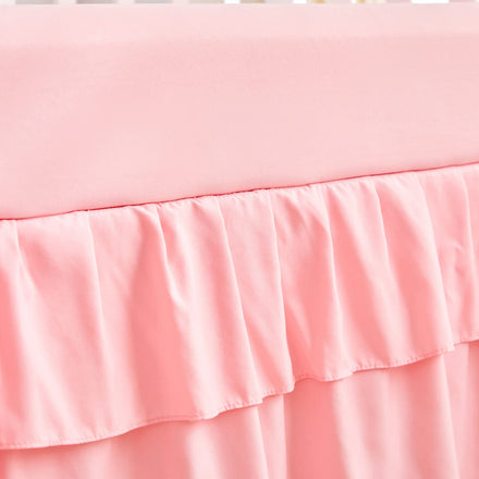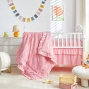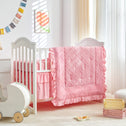 Tufted Ruffle Crib Bedding Set 3 Pieces Baby Boho Quilted Comforter with Fitted Sheet and Bed Skirt - Cute Ruffled Shabby Chic Baby Bedding Soft Blanket Design Pink