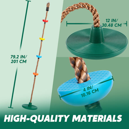 • SUPER VALUE. Our Kids Climbing Rope Tree Swing with Platforms and Disc Swings Seat comes in vibrant Red Color, 120cm Hanging Strap, and a sturdy snap hook.