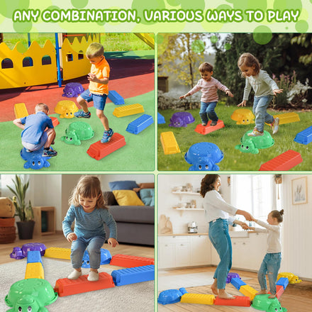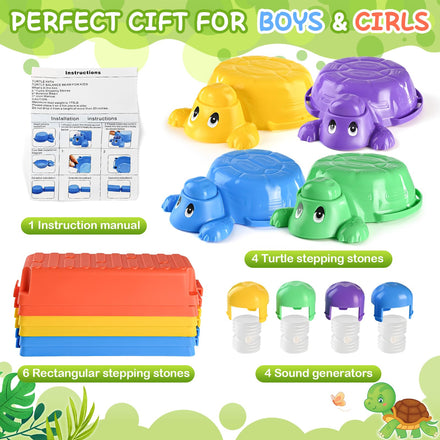 • 【Non-Slip Turtle Design for Safe Play】Featuring 10 durable, textured turtle-shaped stepping stones with anti-slip silicone pads, perfect for indoor and outdoor balance challenges. Ideal for kids aged 3-8 to improve coordination and motor skills while staying safe