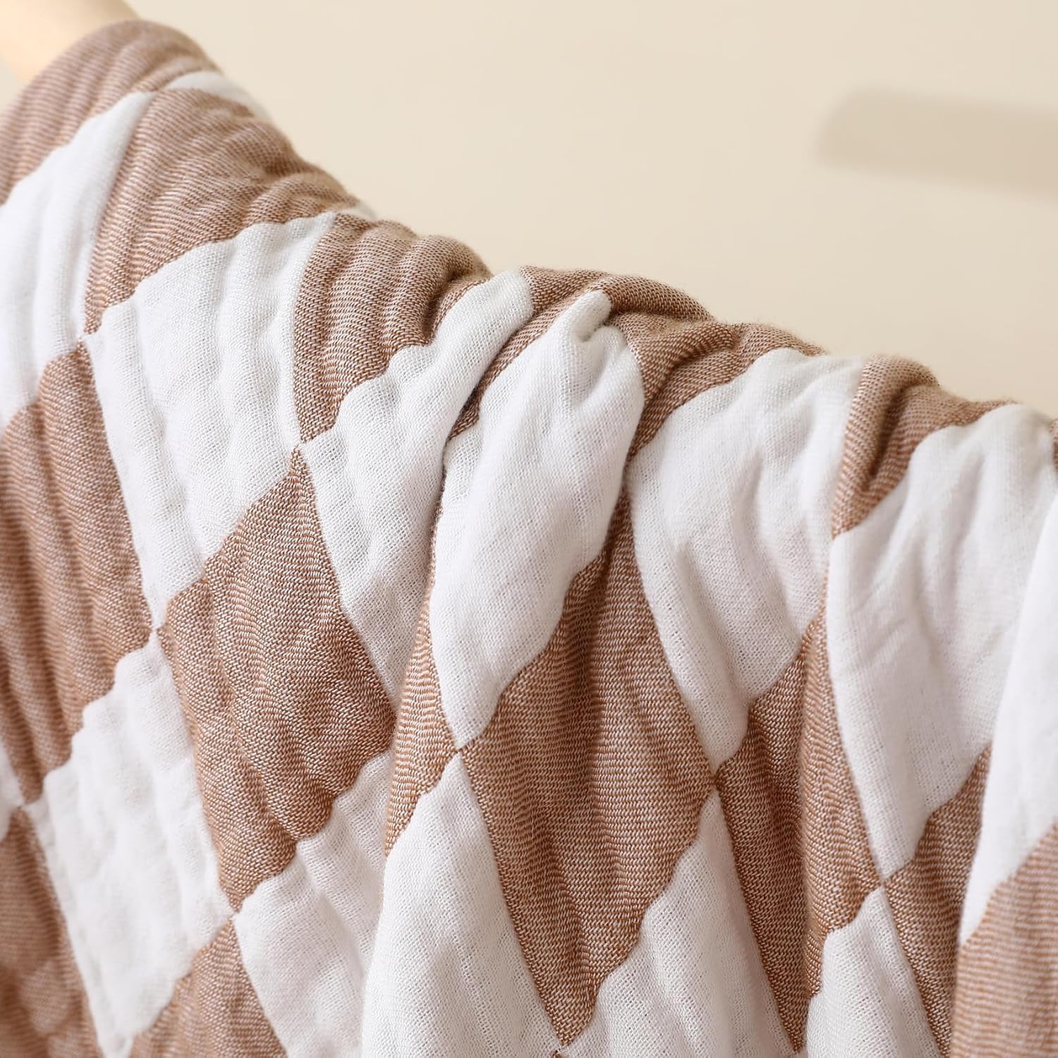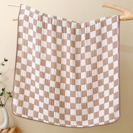 Ultra Soft Muslin Baby Blanket,A Versatile Swaddle and Bed Blanket for Babies, Toddlers, Boys, and Girls (1 Coffee Checkered 1 Pack).