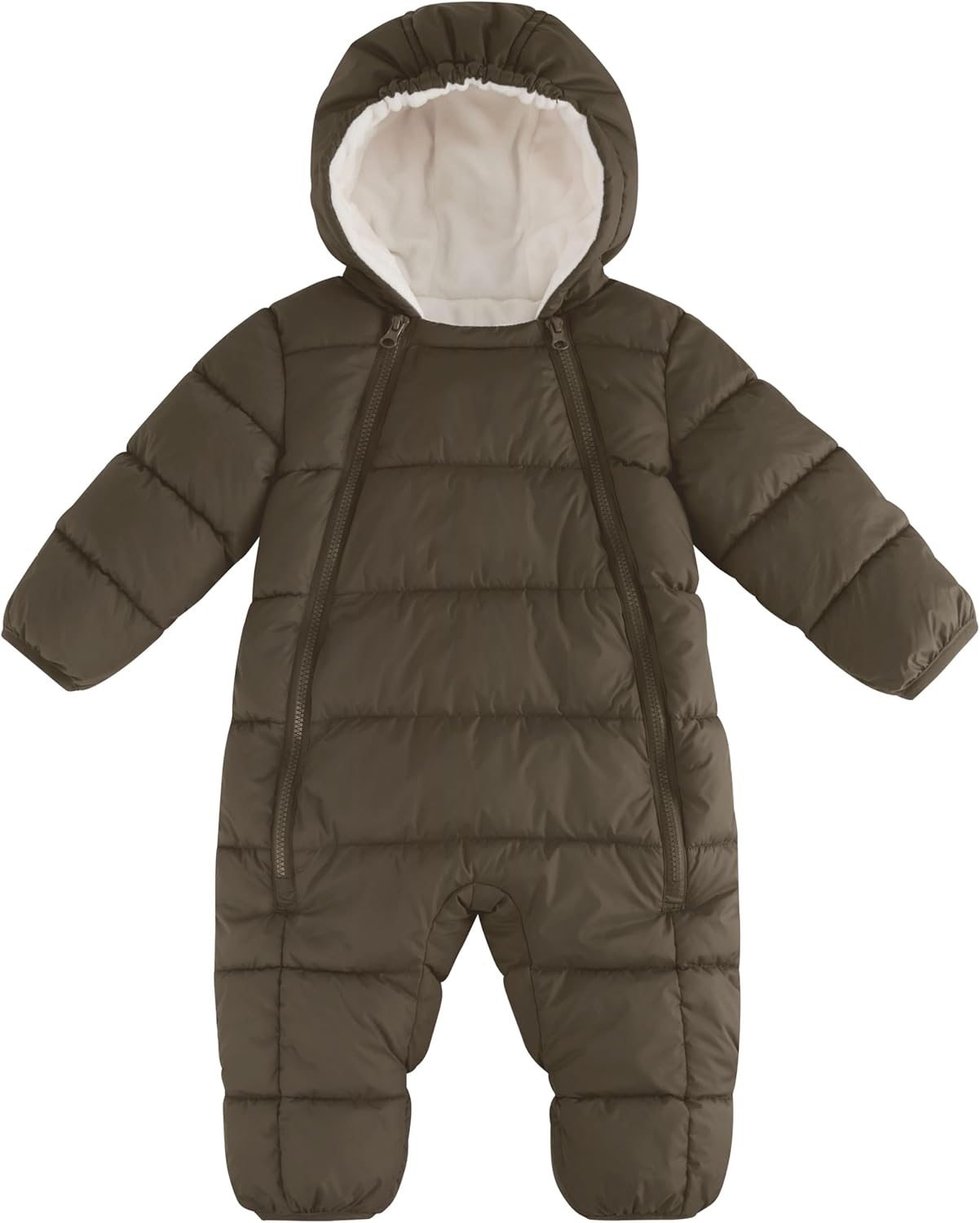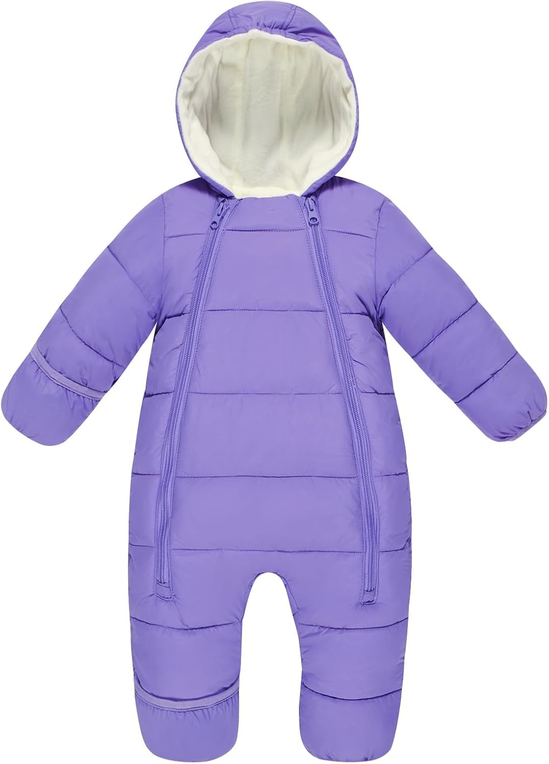 - Style:Dual-zipper system allows you to dress your baby quickly and change their diaper without hassle;Fold-over mitts and foot covers keep wind out.