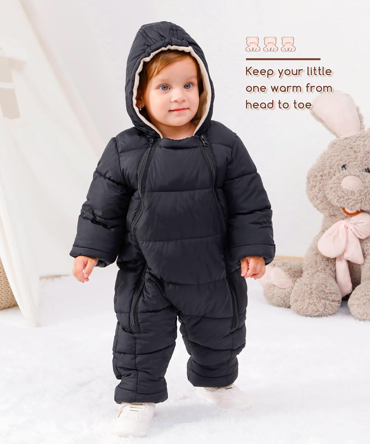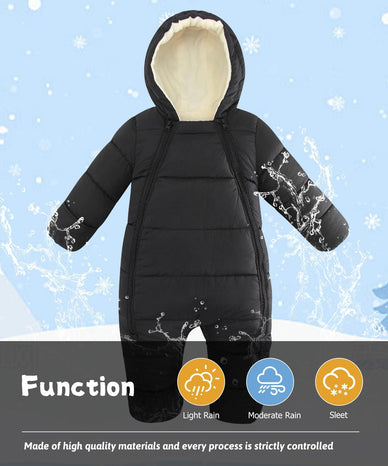 - Feature:Hooded baby snowsuits promises to keep your little one cozy;the waterproof exterior protects baby from the elements.