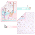 UOMNY Crib Bedding Set for Girls 3 Piece Woodland Baby Girl Crib Bedding Set Include Fitted Crib Sheet Comforter Crib Skirt