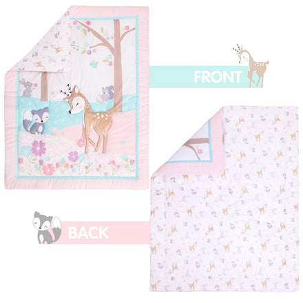 • [Perfect Gift]The little deer woodland 3-piece set is specially designed for girls, with charming and playful decorations that can beautify the baby's room. Let your baby start experiencing the beauty of nature from here! This crib bedding set is also the perfect gift for baby shower, birthday or Christmas.
