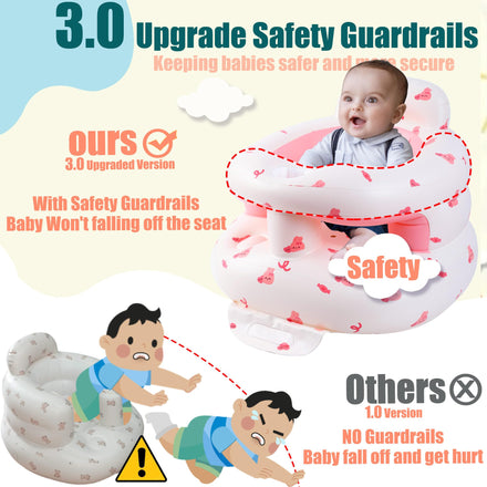 • 【3.0 Upgrade Version】Bavbiiy inflatable baby chair upgraded the safety guardrails, because babies aged 3-36 months, sit me up floor seat for baby, tend to lean forward, and without a safety guardrails, babies are prone to falling, fell head first into the ground, This dangerous concern is addressed in our 3.0 Version.inflatable baby chair baby seats for infants for sitting up.