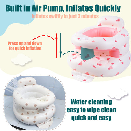 • 【 Built in Air Pump, Inflates Quickly】Our inflatable baby feeding chair, Simply press up and down on the built-in pump and it will be fully inflated in about 3 minutes.Supporting direct cleaning with water, Easy to wipe clean quick and easy, inflatable baby seat inflatable baby chair Blow Up Baby Chair