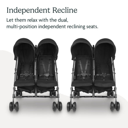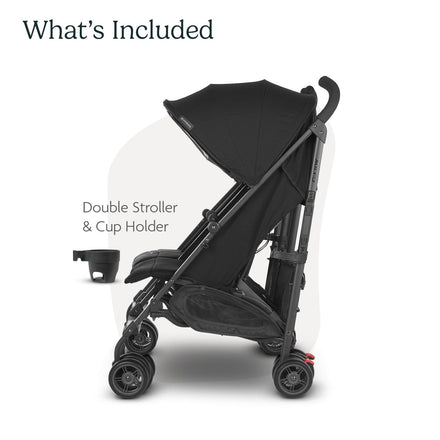 UPPAbaby G-Link V2 Double Umbrella Stroller / Lightweight Design / One-Step Fold + Recline / XL Basket + Canopy / Cup Holder Included / Jake (Black/Carbon Frame)