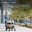 • DELUXE CANOPIES: Protect children from the sun with two extra-large, multi-paneled canopies + pop out UPF 50+ sunshades