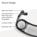• TODDLER APPROVED: A formed cup holder fits sippy cup and juice boxes of various sizes while the recessed bowl allows for easy scooping by little hands.