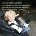 • SNACK TIME, ANYTIME: Keep your toddler satisfied while strolling with the perfect snacking surface and drink holder that attaches to the Minu V3 stroller.